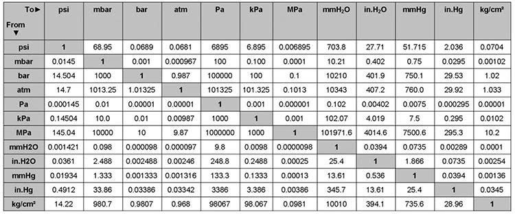 Ngoài ra, bạn có thể theo dõi chỉ số kPa được quy đổi giữa các đơn vị đo lường áp suất khác theo bảng dưới đây: