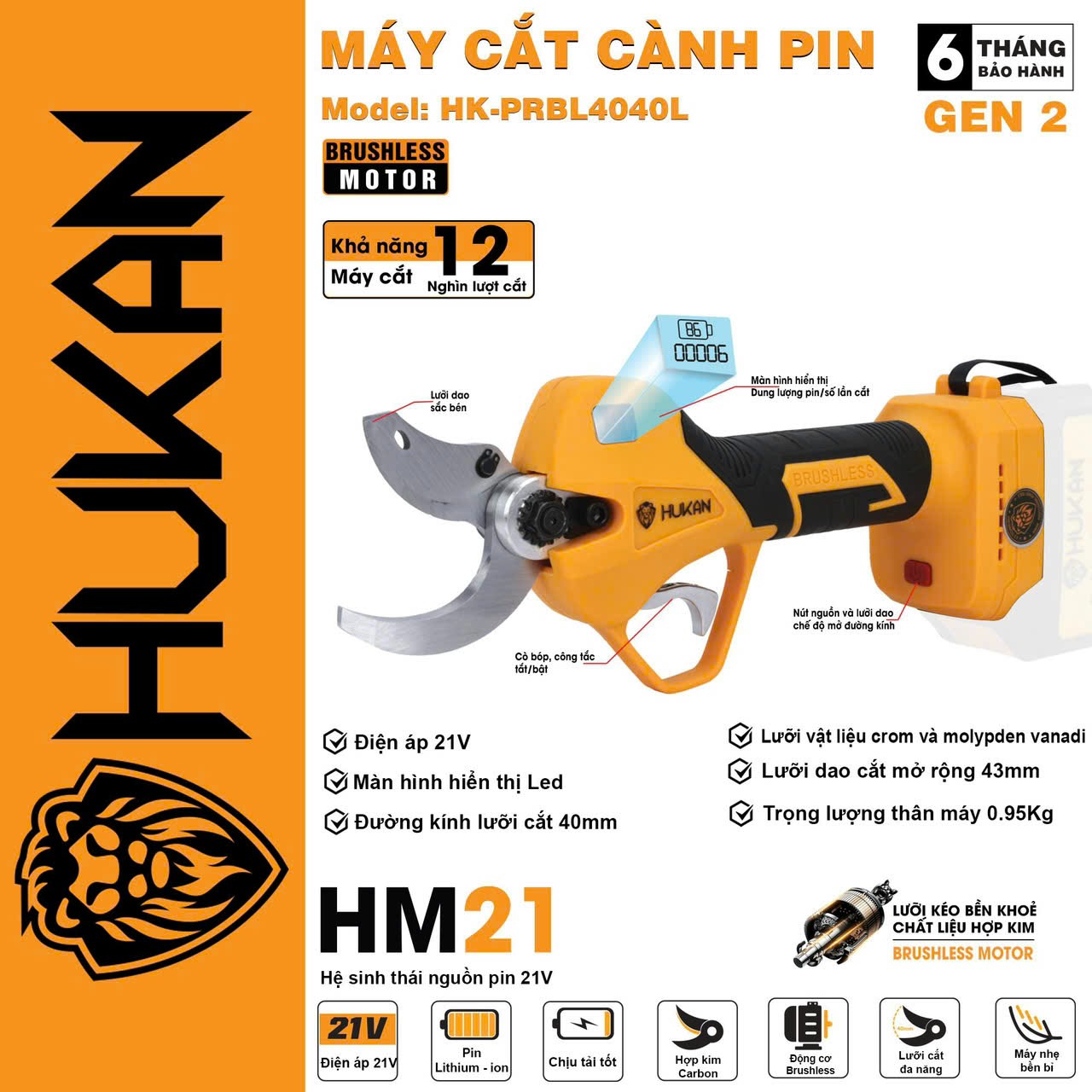 Máy Cắt Cành Dùng Pin HUKAN HK-PRBL4040L