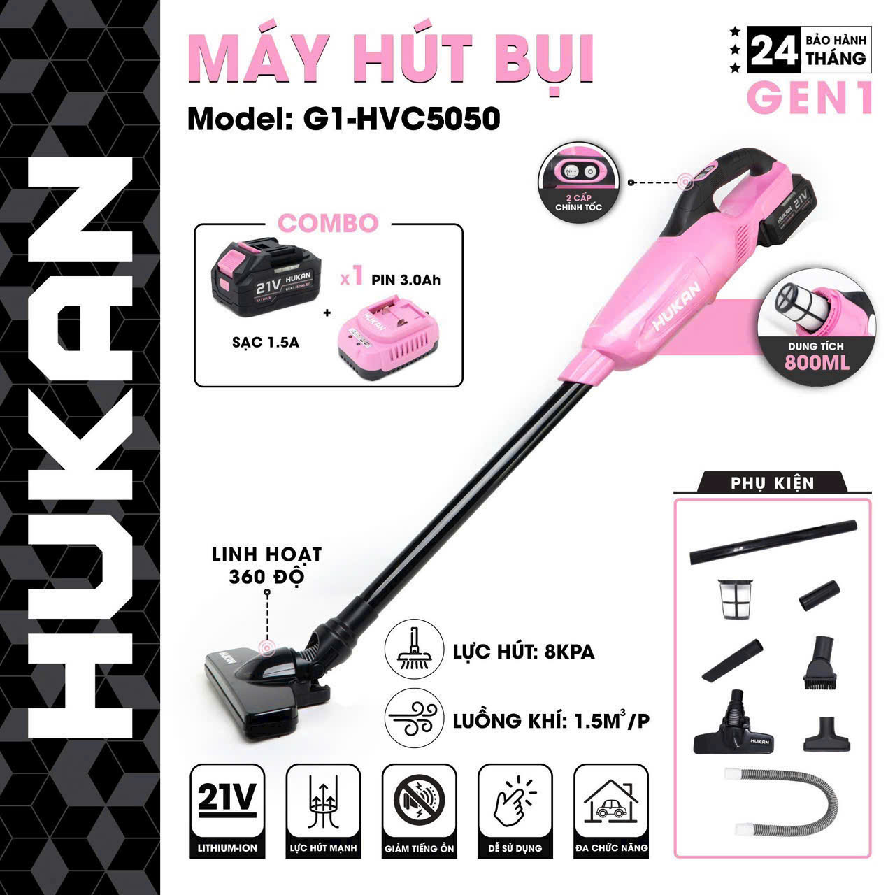 Combo Máy Hút Bụi Cầm Tay Dùng Pin Hukan (GEN 1) HM21-G1-HVC5050