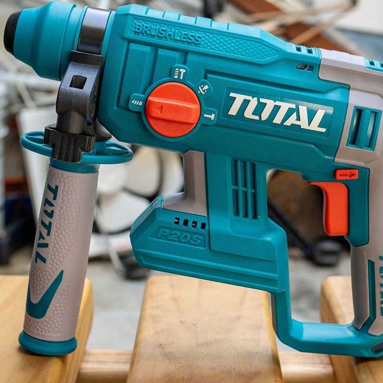 Máy khoan Total có cấu tạo búa xoay chắc chắn, giúp khoan nhanh trên bề mặt cứng. Vỏ máy làm từ hợp kim và nhựa cách nhiệt, tăng độ bền và đảm bảo an toàn khi sử dụng. Một số model trang bị mô-tơ chổi than, giúp duy trì hiệu suất ổn định. Ổ bi giảm ma sát giúp máy vận hành mượt mà, giảm hao mòn. Bộ điều chỉnh tốc độ giúp kiểm soát lực khoan tốt hơn, phù hợp với nhiều loại vật liệu. Máy có độ rung thấp, hạn chế tiếng ồn, giúp làm việc lâu mà không gây mỏi tay.