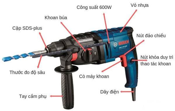 Chọn máy có công suất phù hợp với nhu cầu công việc. Công suất càng cao, khả năng khoan và đục càng mạnh mẽ.