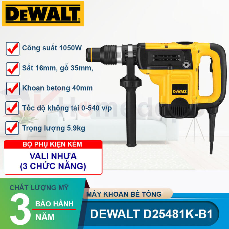DeWalt là thương hiệu nổi tiếng với các sản phẩm chất lượng cao và độ bền vượt trội. Máy khoan bê tông DeWalt có thiết kế chắc chắn, công suất mạnh mẽ, và khả năng chịu tải tốt, phù hợp cho cả các công việc xây dựng chuyên nghiệp.