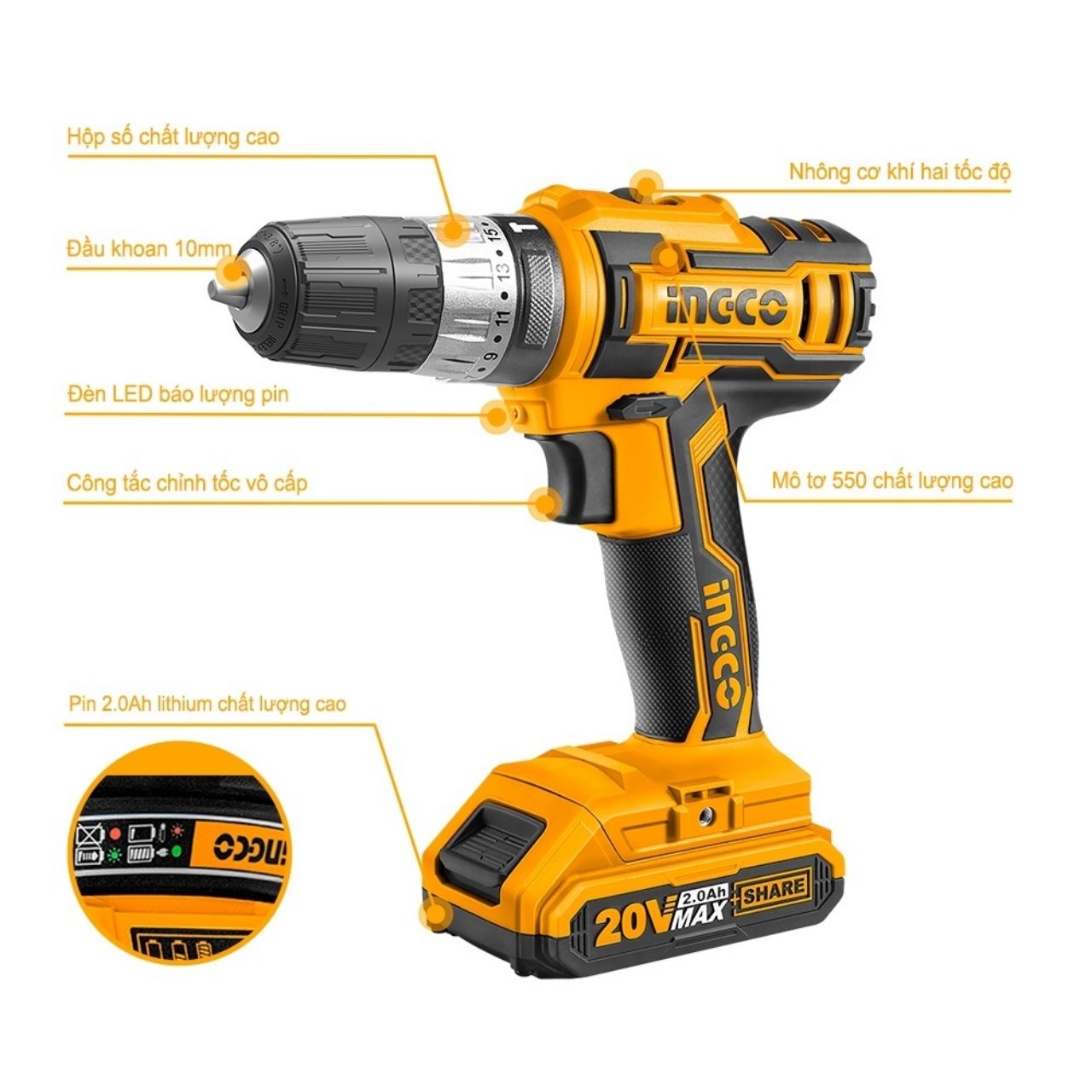 Đặc điểm nổi bật của máy khoan pin Ingco