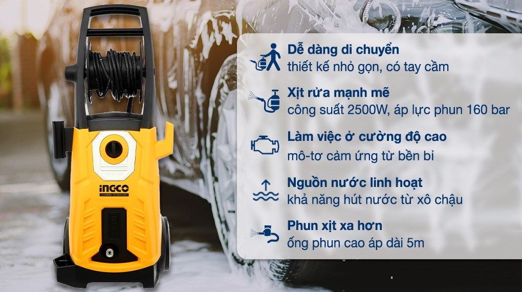 Máy rửa xe gia đình giúp bạn chủ động hơn, tiết kiệm thời gian, và dễ dàng duy trì xe cộ sạch sẽ.