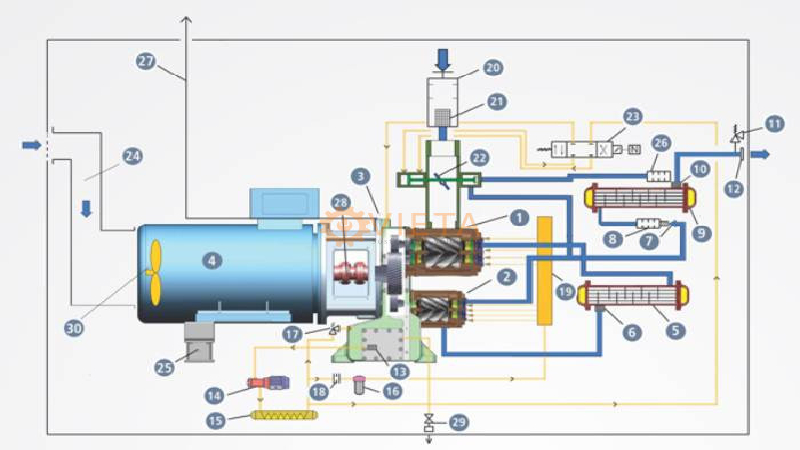 Nguyên lý làm việc của máy nén khí trục vít không dầu