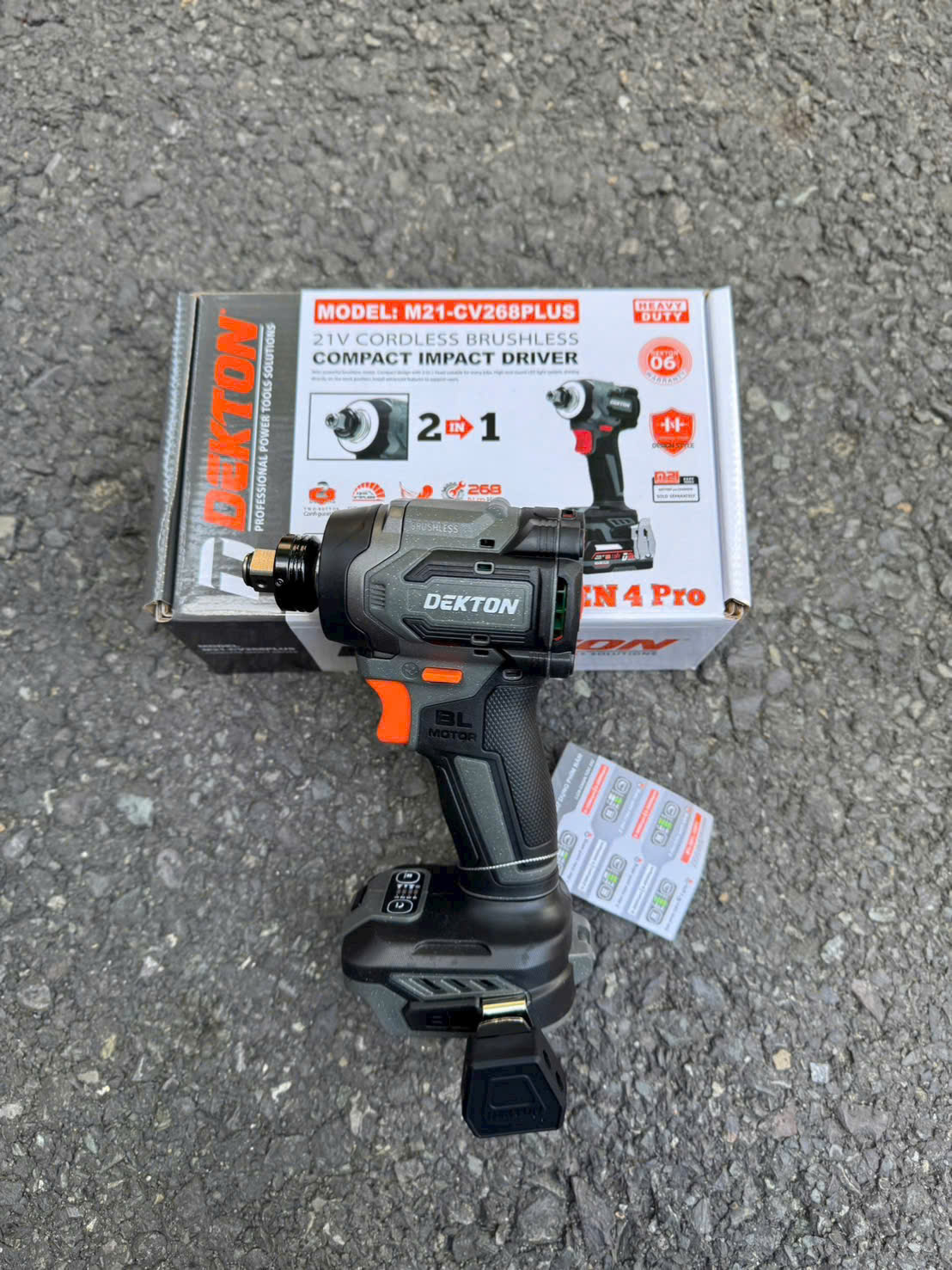 Để dễ phân biết về màu sắc sản phẩm, DEKTON cho ra mắt cây chuyên vít 268N.m với 2 phiên bản màu xám truyền thống (M21-CV268PLUS) và màu xanh ô liu mới (M21-CV268XPLUS) và giữ nguyên các thông số của sản phẩm.
