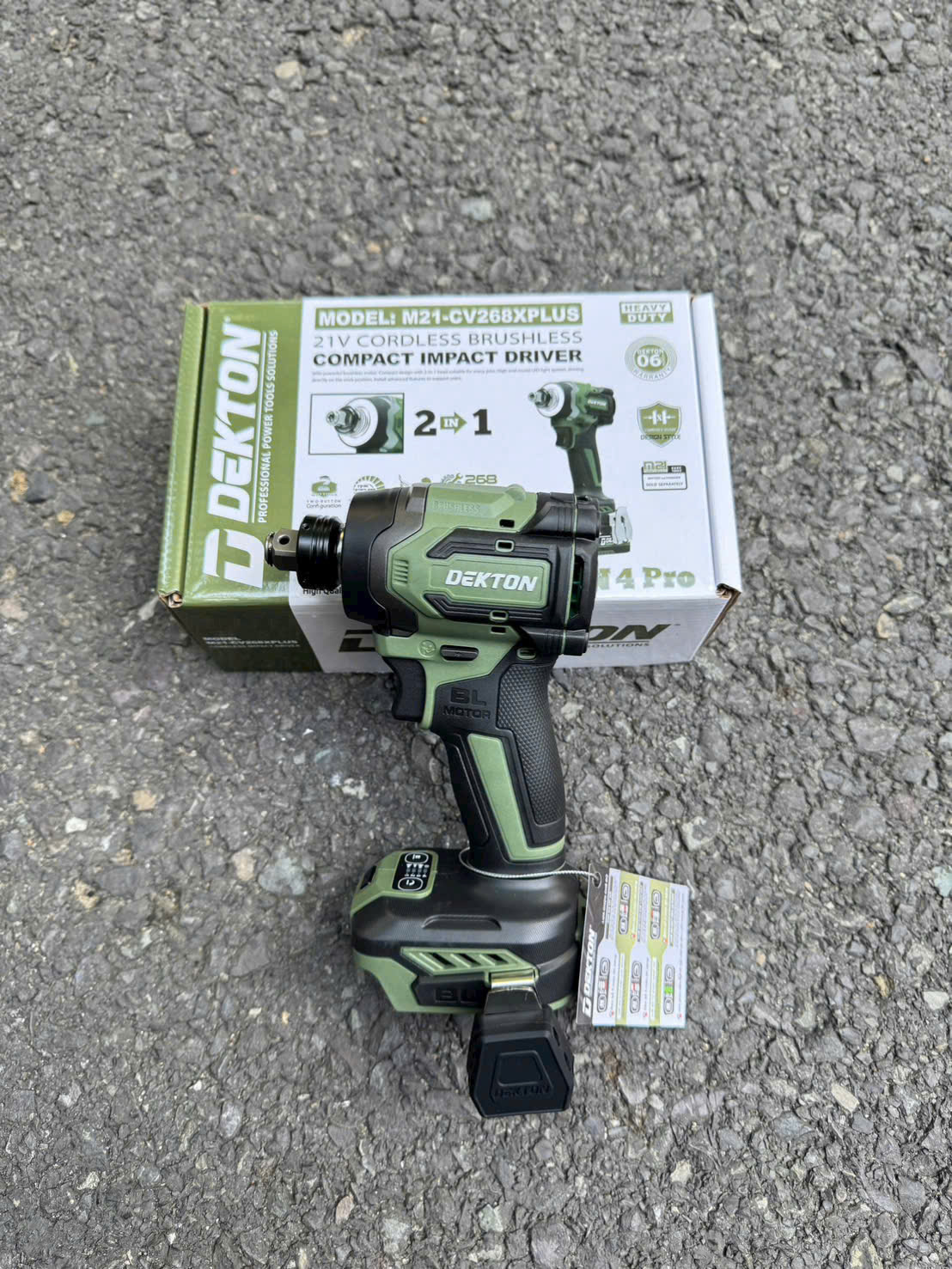 Để dễ phân biết về màu sắc sản phẩm, DEKTON cho ra mắt cây chuyên vít 268N.m với 2 phiên bản màu xám truyền thống (M21-CV268PLUS) và màu xanh ô liu mới (M21-CV268XPLUS) và giữ nguyên các thông số của sản phẩm.