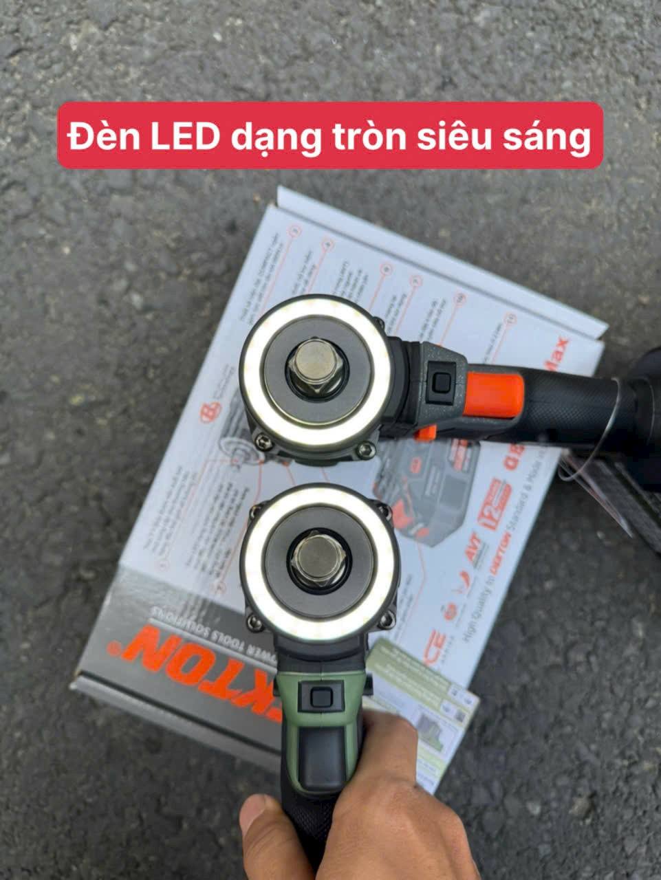 Máy còn được tích hợp thêm đèn LED, giúp chiếu sáng hiệu quả trong các khu vực làm việc thiếu sáng hoặc góc hẹp, đảm bảo người dùng có tầm nhìn rõ ràng để thao tác rõ ràng chính xác. Bên cạnh đó máy còn được thiết kết tay cầm chống trượt và được bọc một lớp cao su, mang lại cảm giác chắc chắn và an toàn khi sử dụng ngay cả khi trong trường hợp dính dầu nhớt hay sử dụng lâu bị đổ mồ hôi tay. Thân máy được chế tạo bằng chất liệu cao cấp nên có khả năng chống chịu va đập tốt, giúp máy giữ được vẻ bề ngoài bền đẹp và các linh kiện bên trong được bảo vệ tốt hạn chế hỏng hóc giúp máy hoạt động ổn định và tuổi thọ máy được nâng cao.