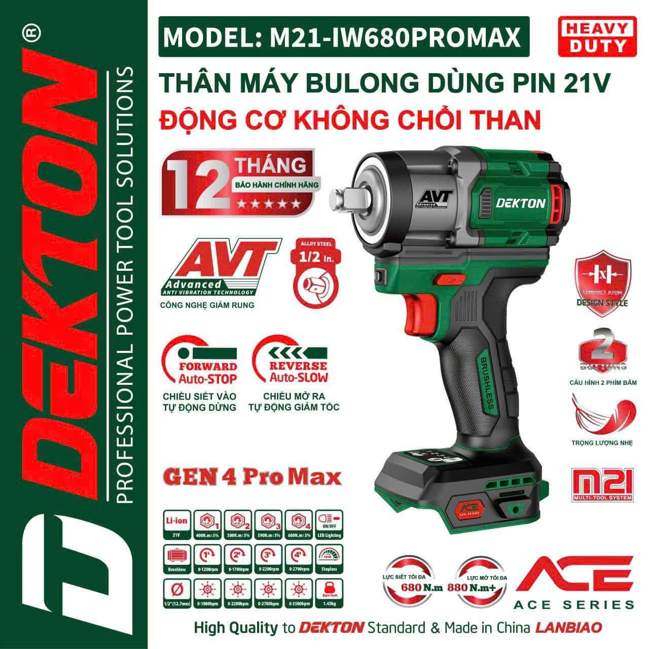 Giới thiệu máy bulong pin 21V động cơ không chổi than DEKTON M21-IW680PROMAX