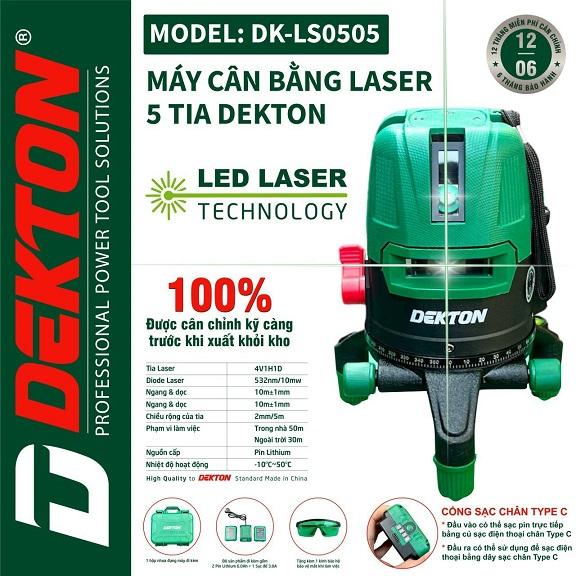 – Máy laser DEKTON DK-LS0505 sở hữu chùm tia laser 4 tia ngang và 1 tia dọc chất lượng cao, hỗ trợ thực hiện các công việc đo đạc và xây dựng với độ chính xác tối ưu. Điốt laser 532/10mw có khả năng chiếu sáng rõ ràng, giúp dễ dàng nhận biết và sử dụng ở môi trường ánh sáng yếu.