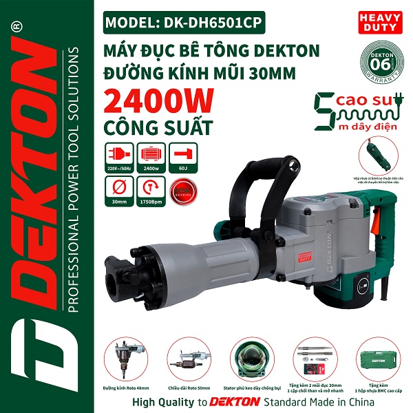 Máy đục bê tông DEKTON DK-DH6501CP là thiết bị mạnh mẽ được thiết kế chuyên dụng cho các công việc xây dựng, sửa chữa và phá dỡ công trình. Với hiệu suất ổn định, độ bền cao và khả năng hoạt động liên tục, sản phẩm này đã trở thành lựa chọn hàng đầu của các thợ xây dựng chuyên nghiệp.