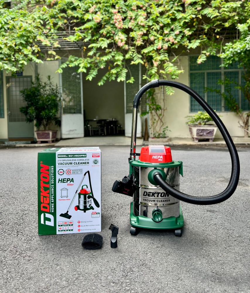 Dekton M21-HB25PRO là mẫu máy hút bụi cao cấp brushless cordless (động cơ không chổi than, dùng pin) thuộc hệ sinh thái M21 Multi-Tool System, được thiết kế để xử lý hiệu quả cả bụi khô và chất lỏng. Với thùng inox 25L chống gỉ, bộ lọc HEPA cao cấp, cùng chế độ thổi bụi đa năng, sản phẩm mang đến giải pháp vệ sinh toàn diện cho gia đình, văn phòng, gara, xưởng sản xuất hoặc công trình thi công.