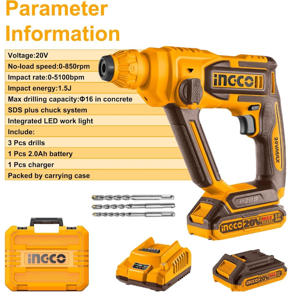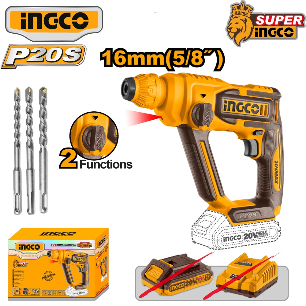 Máy khoan bê tông 2 chức năng dùng pin 20V Ingco CRHLI201681/CRHLI20168