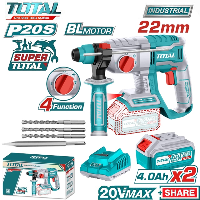 👉Máy khoan đục bê tông Brushless dùng pin 20V Total TRHLI20208