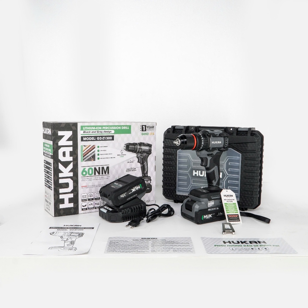– Tên sản phẩm: Máy khoan pin HUKAN G2-Z1300, Không chổi than, 60Nm, 3 chức năng 13 ly, Có khóa trục CÓ TẠO XUNG