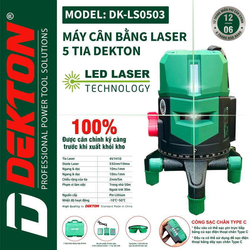 – Máy laser DEKTON DK-LS0503 sở hữu chùm tia laser 4 tia ngang và 1 tia dọc chất lượng cao, hỗ trợ thực hiện các công việc đo đạc và xây dựng với độ chính xác tối ưu. Điốt laser 532/10mW có khả năng chiếu sáng rõ ràng, giúp dễ dàng nhận biết và sử dụng ở môi trường ánh sáng yếu.