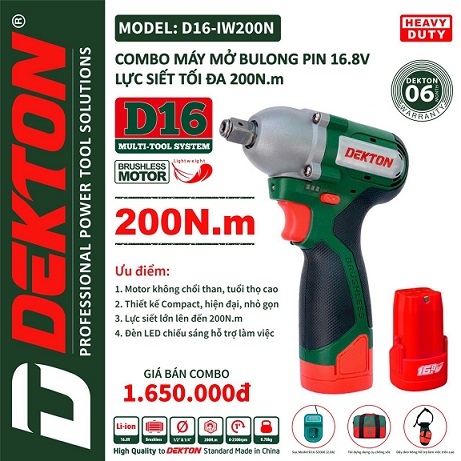 Máy mở bulong DEKTON D16-IW200N đã trở thành công cụ không thể thiếu cho nhiều lĩnh vực như xây dựng, bảo trì và cơ khí. Máy sử dụng motor không chổi than, cung cấp lực siết mạnh mẽ lên đến 200N.m. Sản phẩm cũng được trang bị đèn LED để hỗ trợ làm việc trong môi trường thiếu ánh sáng. Hãy cùng, Dungcuchinhhang khám phá chi tiết về các tính năng, lợi ích mà DEKTON D16-IW200N mang lại, giúp Anh/Chị dễ dàng chọn lựa sản phẩm phù hợp với nhu cầu sử dụng.