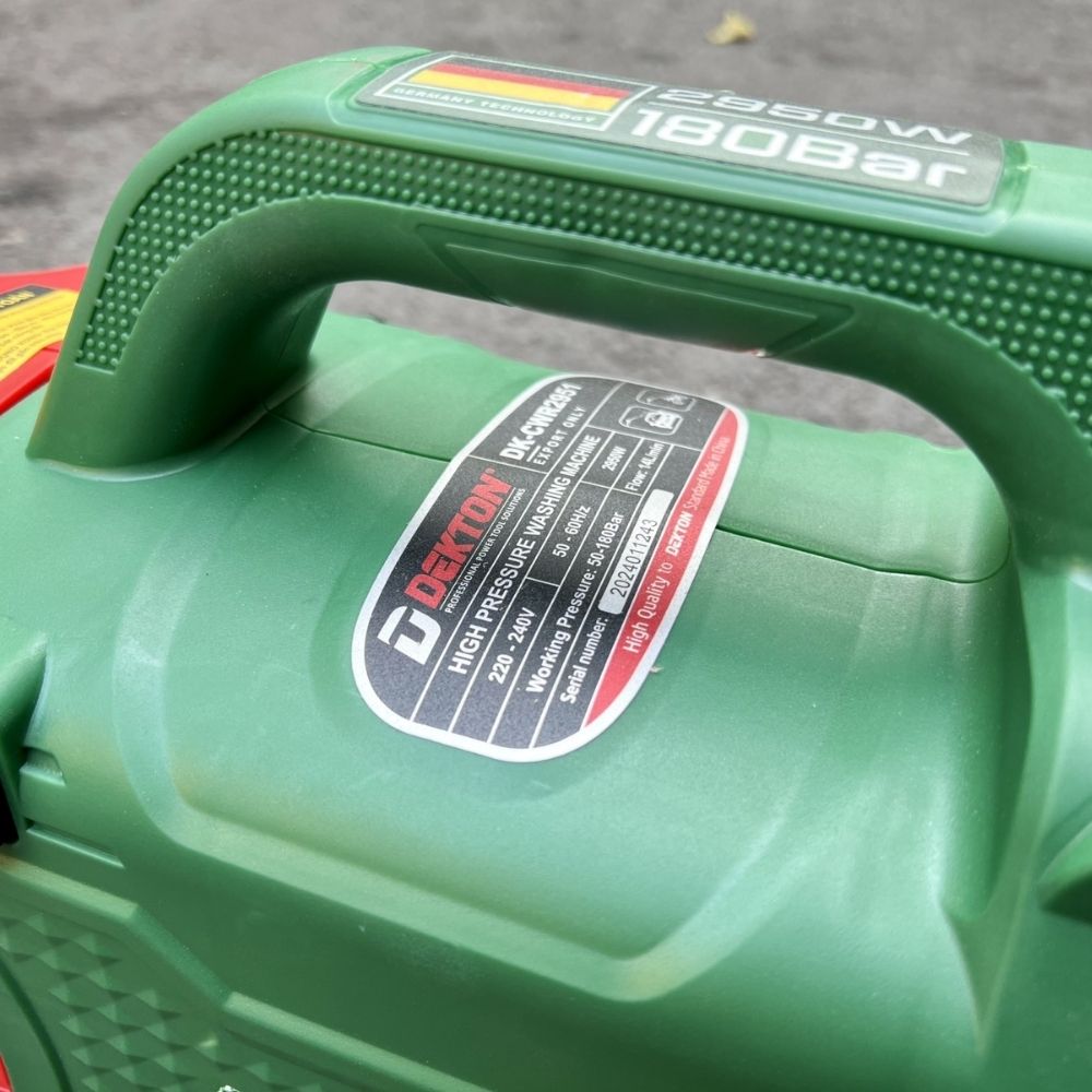 Máy rửa xe Dekton 2950W mang đến hiệu suất làm sạch vượt trội với động cơ không chổi than bền bỉ. Máy hoạt động ổn định khi xịt rửa ô tô, xe máy, sân vườn hay các bề mặt lớn ngoài trời.