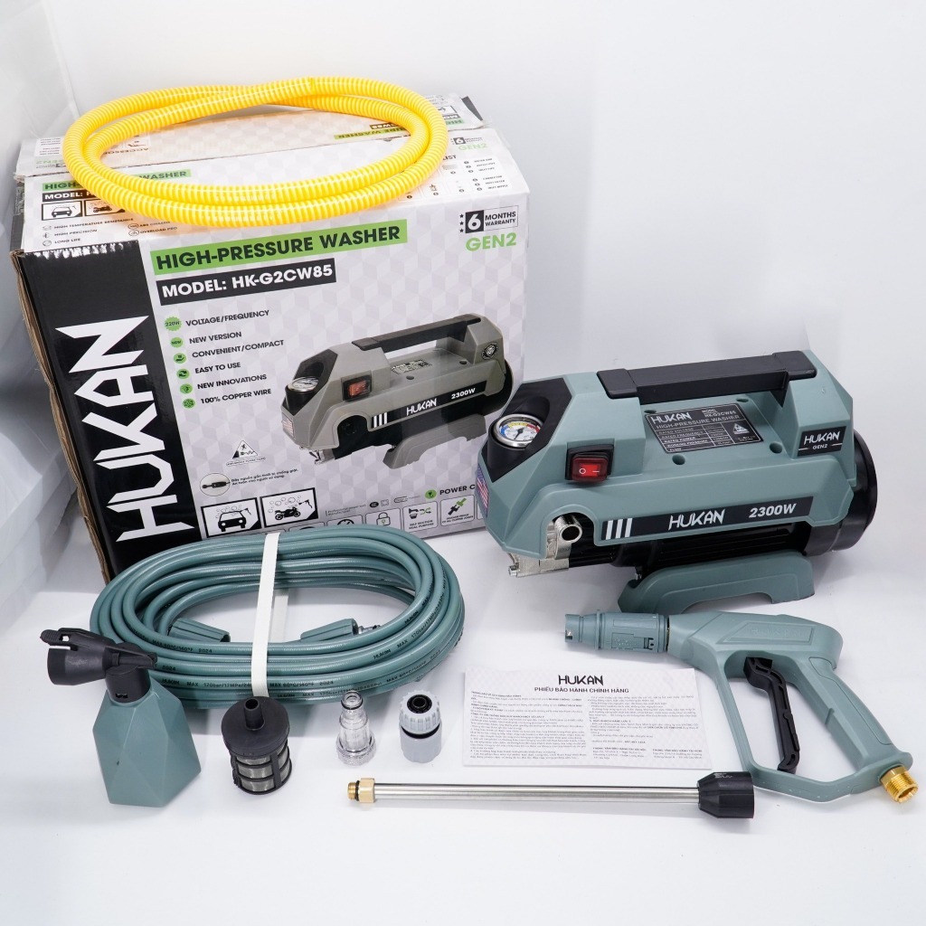 – Tên sản phẩm: Máy rửa xe CÓ CHỐNG GIẬT HUKAN HK-G2CW85, Công suất 2300W, Động cơ Không chổi than, lưu lượng 9 lit/phút
