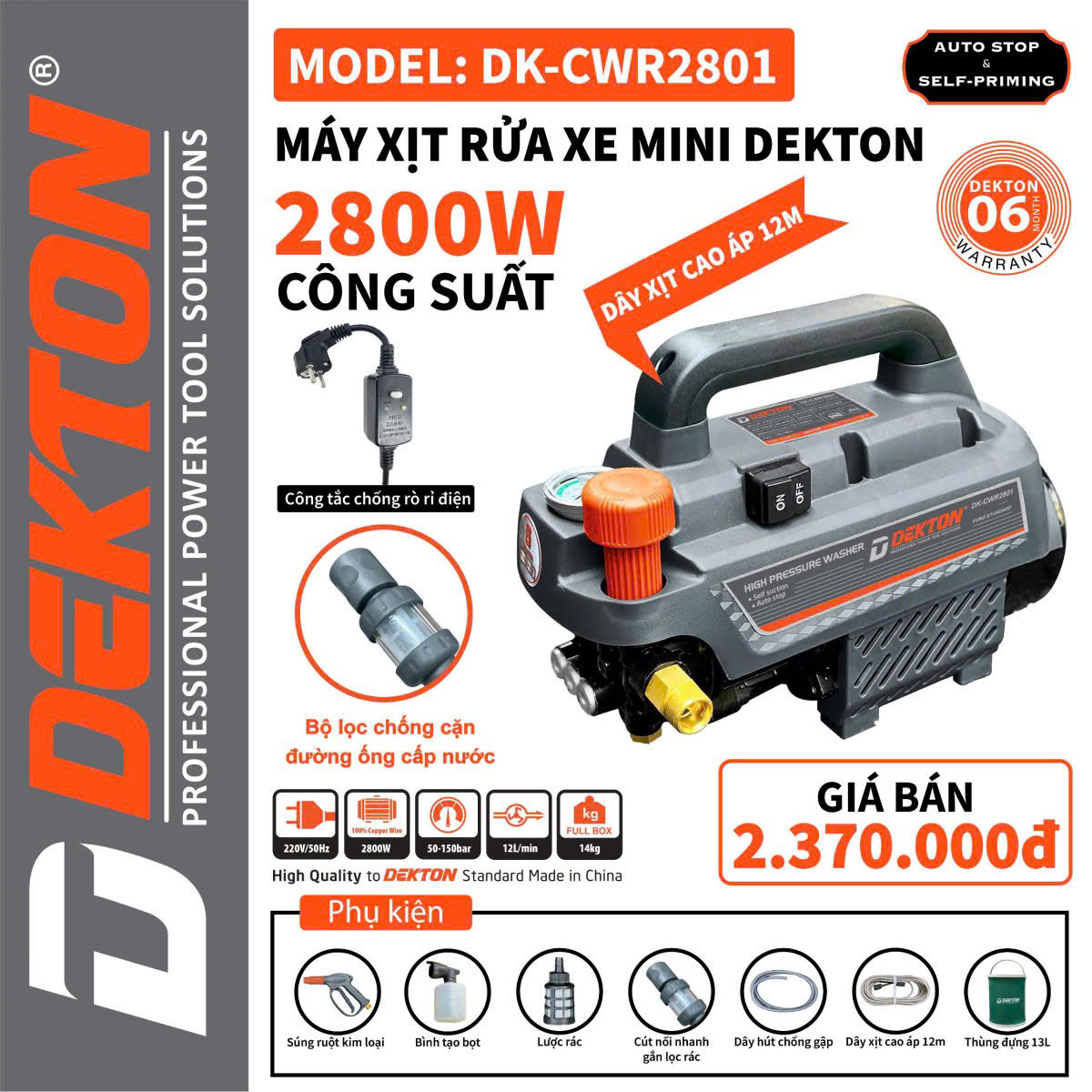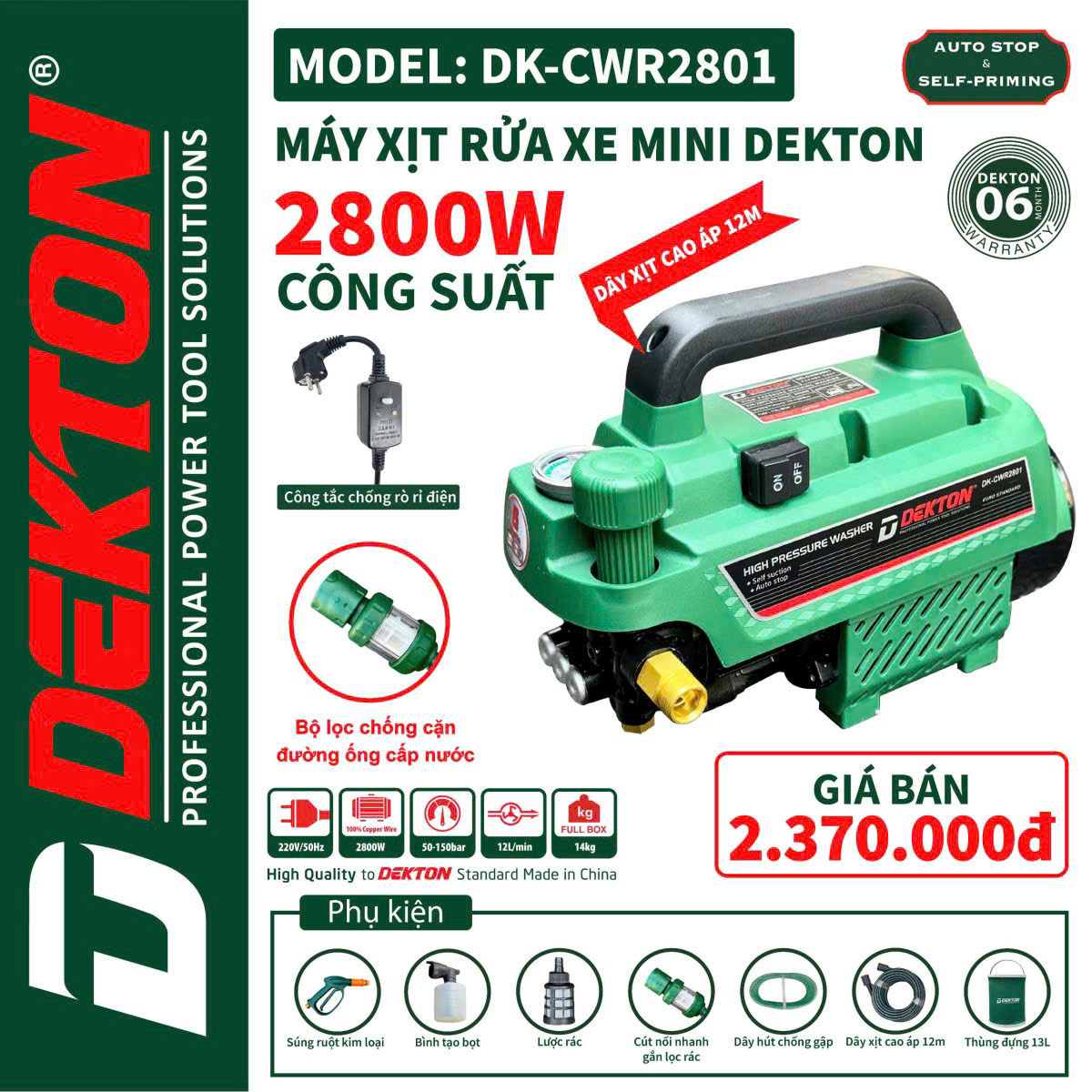 Máy rửa xe không chỉ là thiết bị tiện lợi trong việc làm sạch xe cộ, mà còn là công cụ đa năng để vệ sinh sân vườn, nhà cửa, điều hòa… Trong đó, máy rửa xe chống giật Dekton DK-CWR2801 nổi bật nhờ thiết kế an toàn, công suất mạnh mẽ và độ bền cao. Đây là lựa chọn lý tưởng cho các hộ gia đình và tiệm rửa xe nhỏ đang tìm kiếm một dòng máy rửa xe công suất 2800W vừa hiệu quả vừa tiết kiệm.