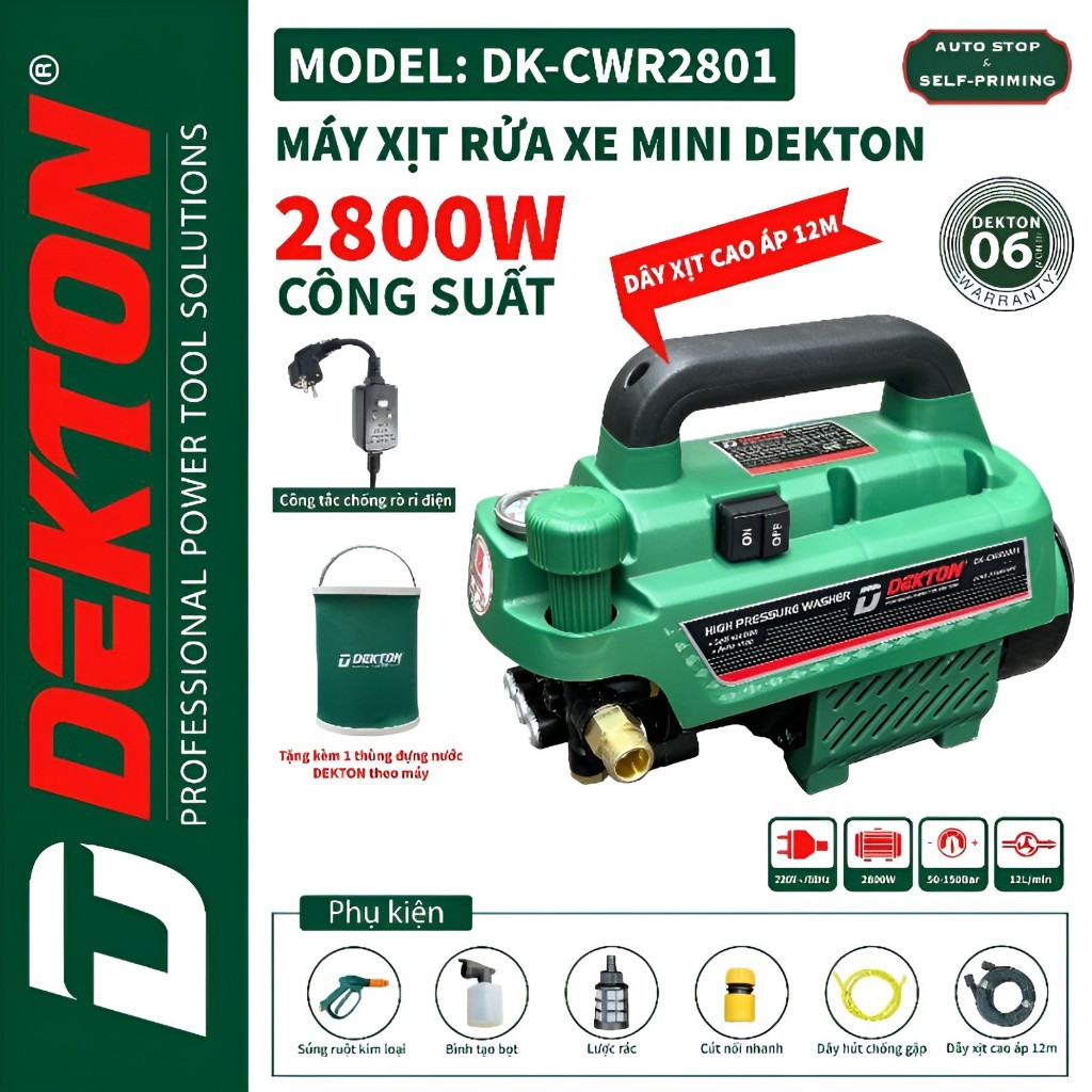 Máy Rửa Xe Dekton DK-CWR2801 – Công Suất 2800W – Có Chỉnh Áp lõi đồng 100% bảo hành chính hãng