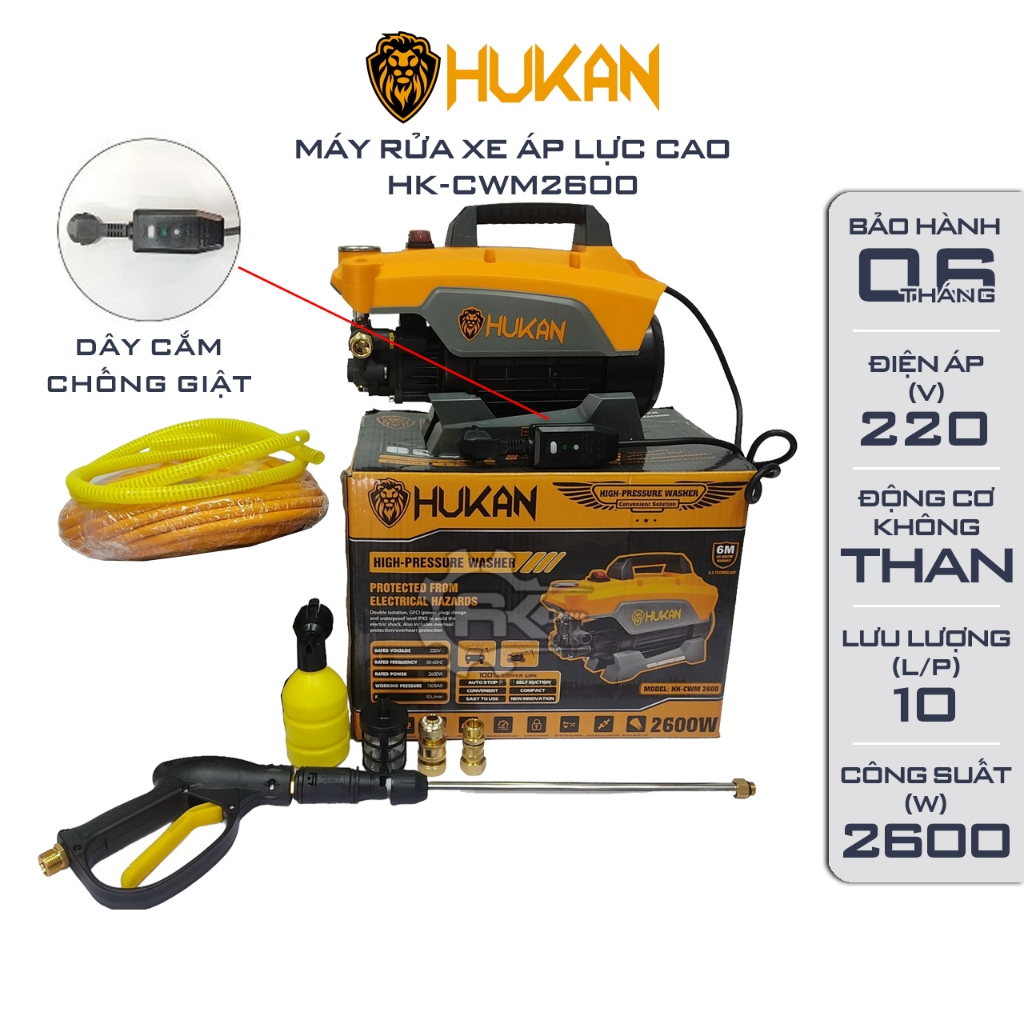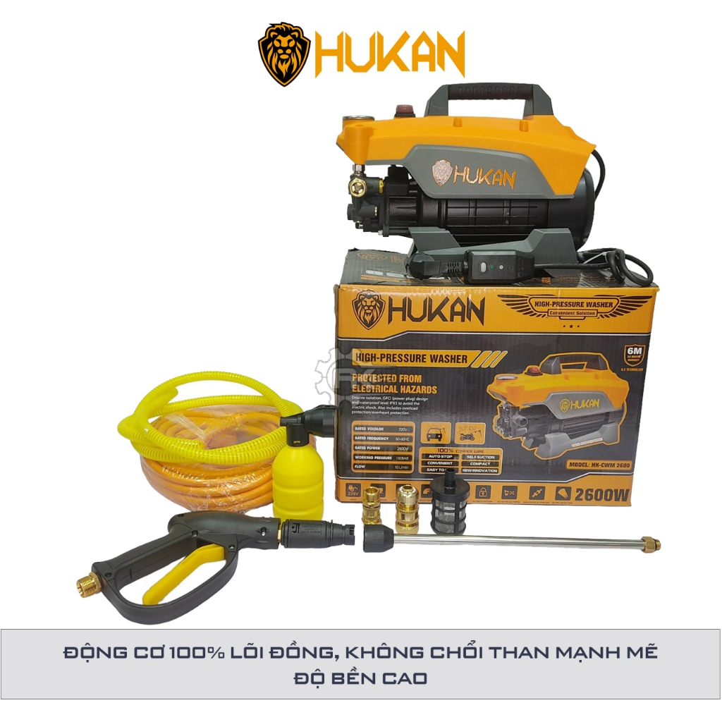 Máy rửa xe HUKAN HK-CWM2600,Có chống giật, Công suất lớn 2600W, Động cơ Dây đồng nguyên chất