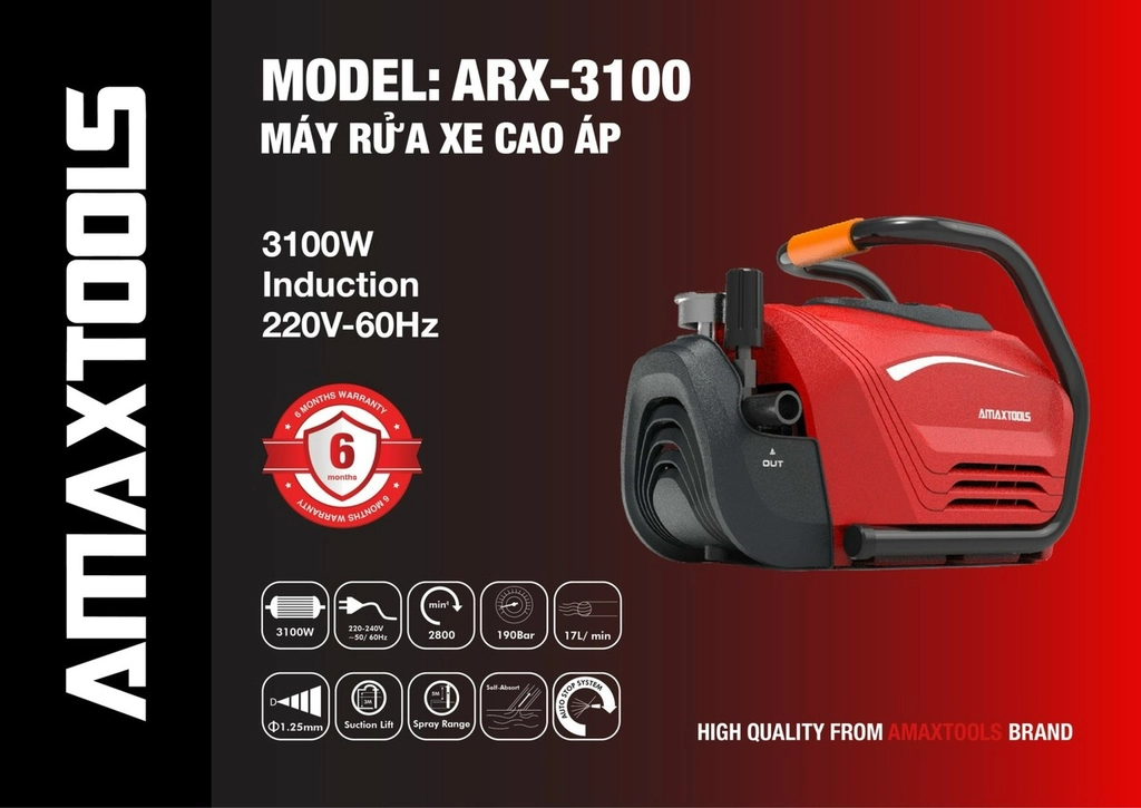 Máy rửa xe mini gia đình AMAXTOOLS ARX3100 là dóng máy rửa xe thuộc thương hiệu AMAXTOOLS. Thương hiệu đến từ Trung Quốc nhưng lại có 50 năm kinh nghiệm trong ngành thiết bị dụng cụ máy móc, và có công nghệ đến từ quốc tế và chất lượng được kiểm định nghiêm ngặt. Nên về chất lượng và hiệu suất của máy rửa xe ARX3100 là điều không thể nghi ngờ. Máy phù hợp với các hộ gia đình và doanh nghiệp vừa và nhỏ.