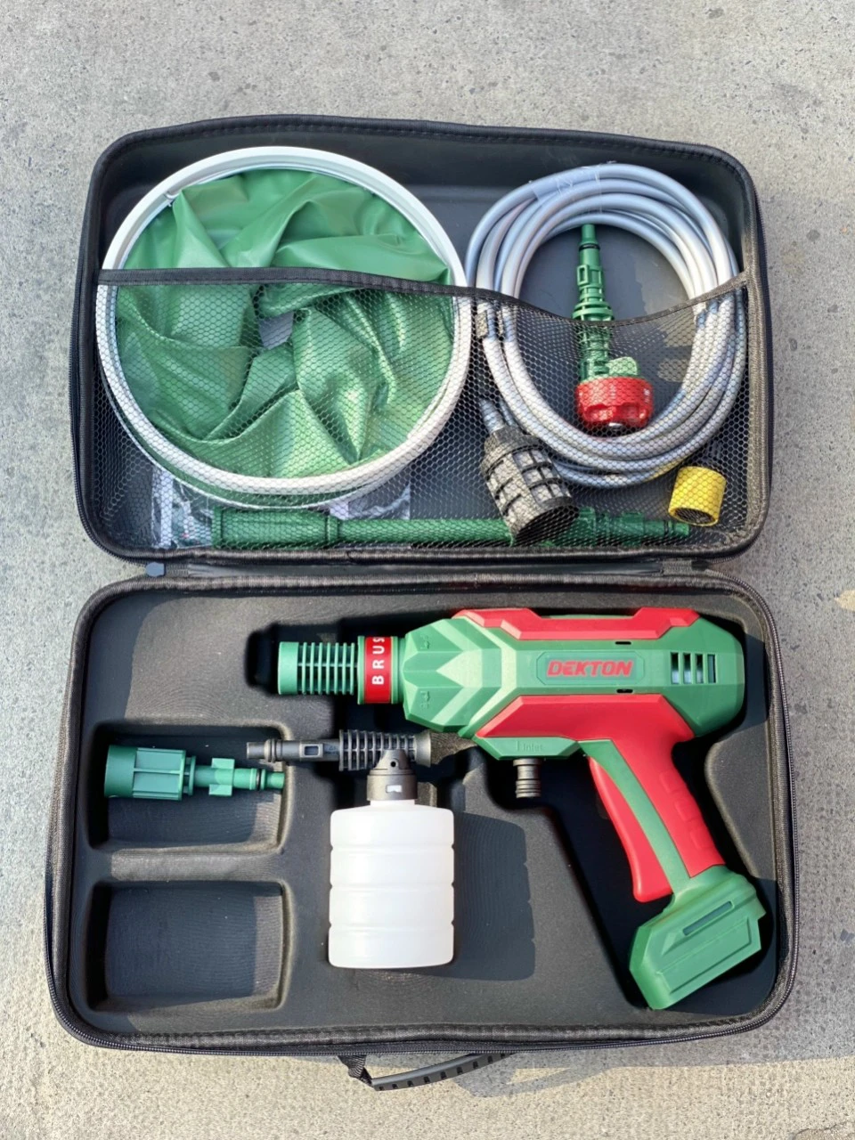 Súng rửa xe dùng pin 21V Dekton M21- SRX1401BL là một công cụ điện chuyên dụng để làm sạch cho các loại vật liệu, đồ dùng… Máy sử dụng cơ chế phun với áp lực lớn giúp đẩy nhanh quá trình vệ sinh lẫn làm sạch cho bề mặt của vật liệu, giúp tiết kiệm công sức và thời gian cho người sử dụng. Với Bộ súng xịt rửa dùng pin DEKTON M21 SRX1401BL, nhu cầu cho công việc vệ sinh chuyên nghiệp đòi hỏi phải di chuyển nhiều hoặc làm việc những nơi không có sẵn nguồn điện sẽ được đáp ứng một cách hoàn hảo.