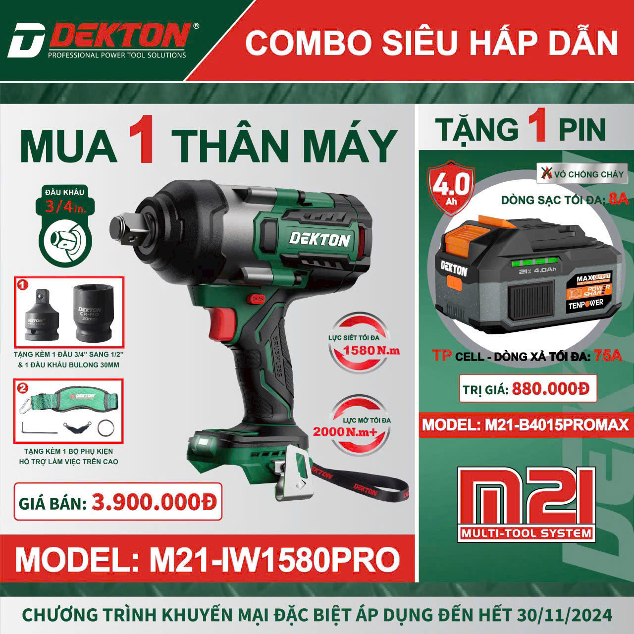 Mua máy siết bulong DEKTON M21-IW1580PRO chính hãng, giá tốt ở đâu?