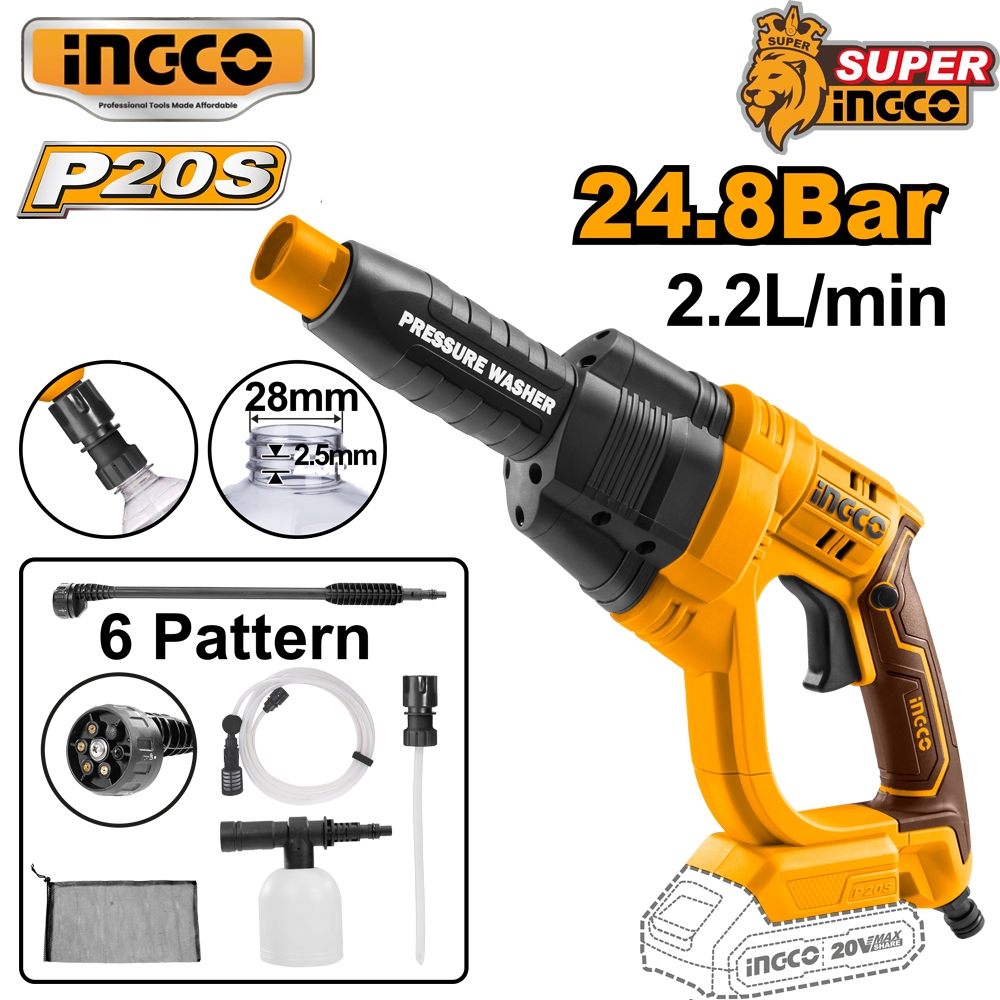 👉 Máy xịt rửa xe dùng pin Ingco 20V CPWLI2008 – Động Cơ Chổi Than