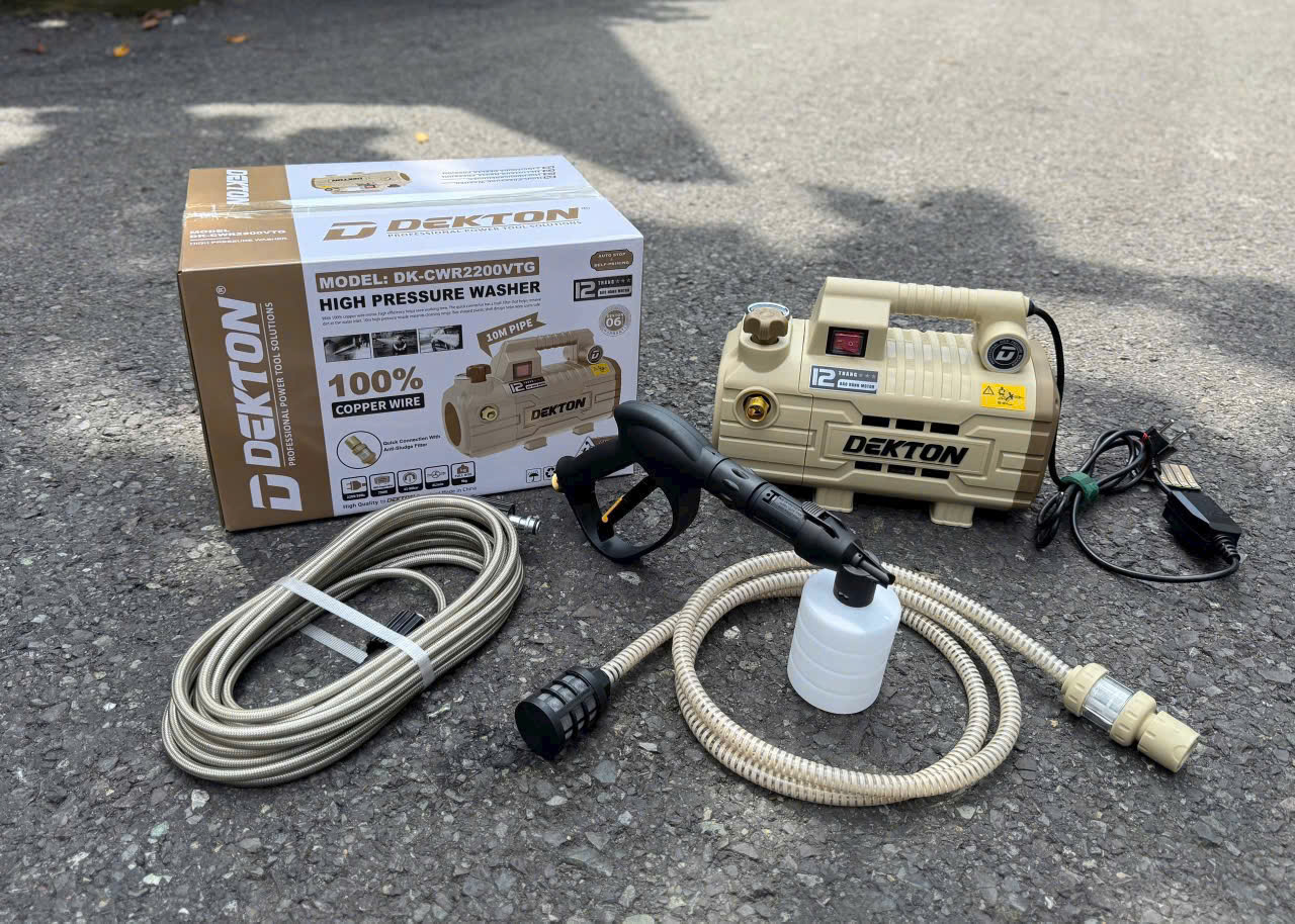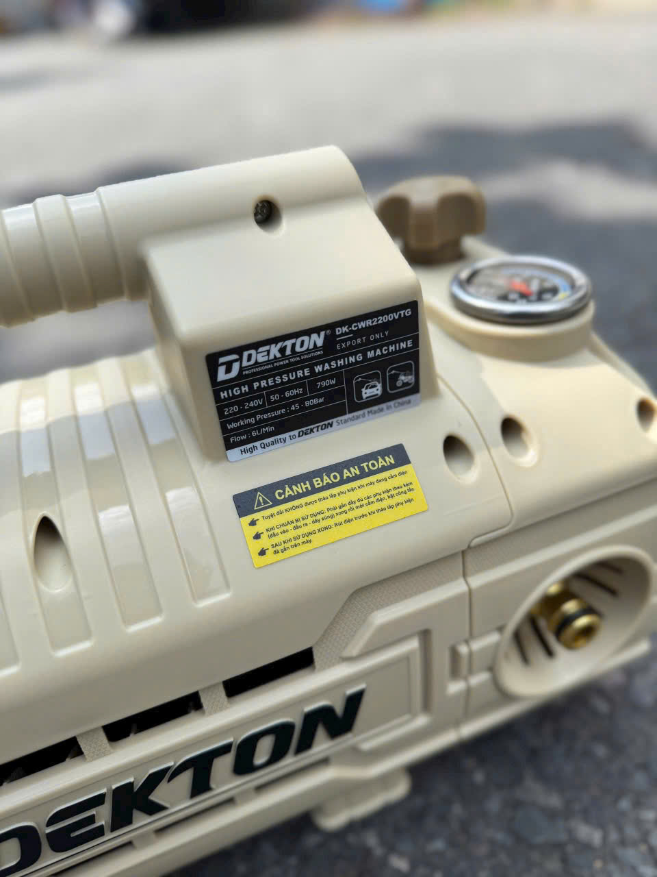 Máy xịt rửa xe mini Dekton DK-CWR2200VTG là dòng máy rửa xe gia đình cao cấp, sở hữu motor cảm ứng từ 100% dây đồng, cho khả năng vận hành êm ái, ổn định và độ bền vượt trội. Sở hữu công suất 790W cùng áp lực phun 45-80 bar, máy giúp làm sạch nhanh chóng xe máy, ô tô, sân vườn, tường, đồ nội ngoại thất hoặc dụng cụ cơ khí mà không tốn nhiều nước.