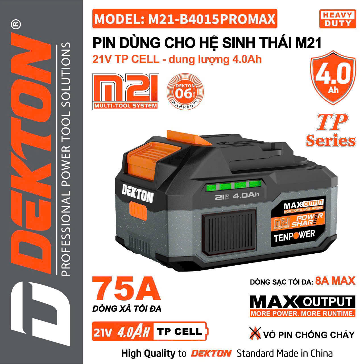 Dưới đây là các thông số cụ thể của Pin Dekton M21-B4015PROMAX:
