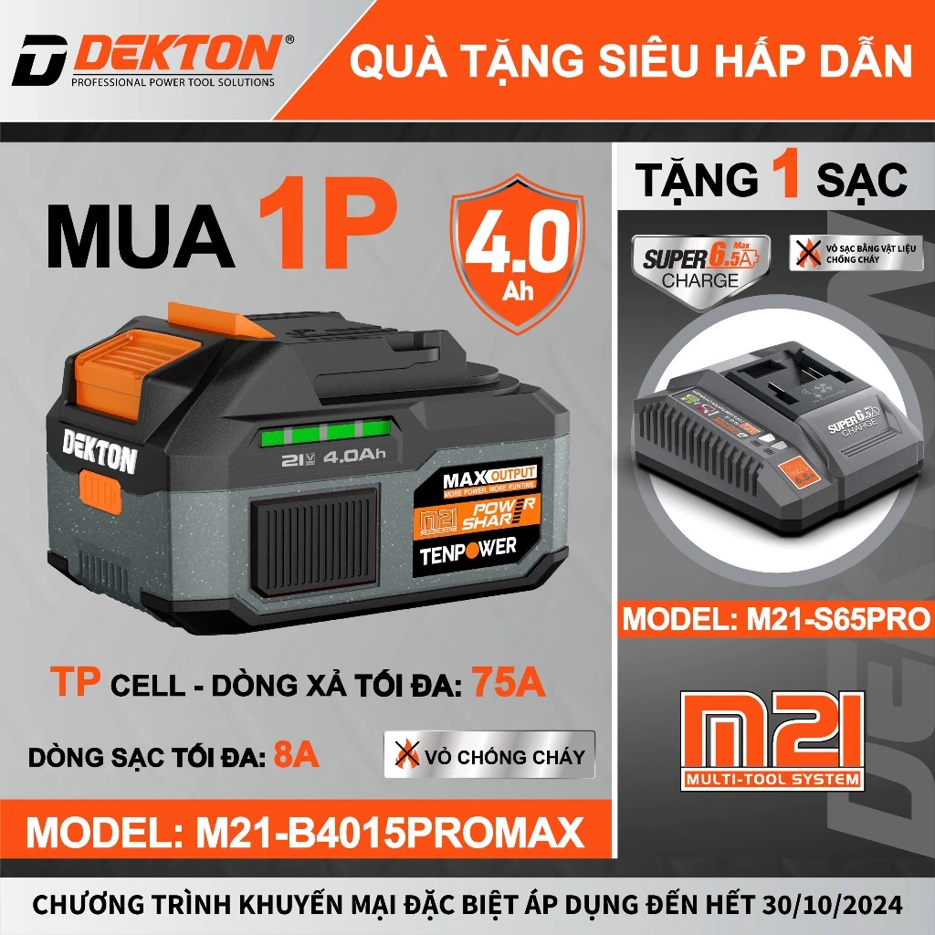 Pin Dekton M21-B4015PROMAX sở hữu nhiều tính năng nổi bật, giúp tối ưu hóa hiệu suất sử dụng cho các thiết bị điện cầm tay: