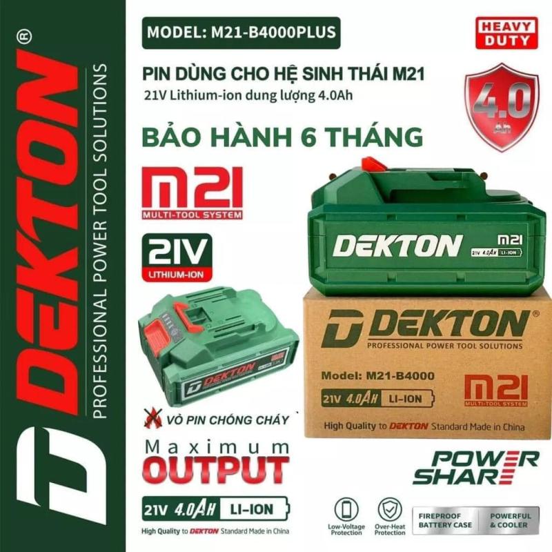 Pin Dekton 21V M21-B4000Plus chân pin phổ thông chính hãng An Tools là một phụ kiện công cụ điện không thể thiếu cho các máy hệ M21. Với dung lượng pin 4AH và điện áp sạc lên đến 21VDC, bạn có thể sử dụng công cụ liên tục một thời gian dài. Điều đặc biệt về model B4000PLUS là dòng cao hơn so với B4000 trước đó, mang lại hiệu suất hoạt động tốt nhất và giúp tiết kiệm năng lượng tiêu thụ. Mã Pin M21 của sản phẩm được thiết kế để sử dụng với chân pin Makita phổ thông, giúp bạn có được nhiều lựa chọn linh hoạt cho các máy của mình. Đèn báo pin tích hợp giúp bạn biết khi nào cần sạc lại để không bị ngừng hoạt động khi cần thiết nhất. Sản phẩm Pin Dekton 21V M21-B4000Plus chân pin phổ thông được bảo hành trong khoảng thời gian 6 tháng – mang lại sự yên tâm và tin tưởn cho người tiêu dùng.