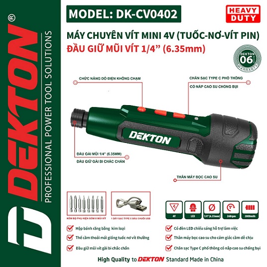 Tua vít điện cầm tay Dekton DK-CV0402 không chỉ là công cụ hỗ trợ sửa chữa tiện dụng mà còn đảm bảo an toàn cho người dùng với các tính năng thông minh như dò điện không chạm và đèn LED chiếu sáng. Thiết kế nhỏ gọn, tốc độ mạnh mẽ và pin dung lượng cao giúp sản phẩm này trở thành lựa chọn lý tưởng cho cả thợ chuyên nghiệp và người dùng gia đình. Nếu bạn đang tìm kiếm một tua vít điện đa năng, bền bỉ và an toàn, Dekton DK-CV0402 chắc chắn là sự lựa chọn không thể bỏ qua.