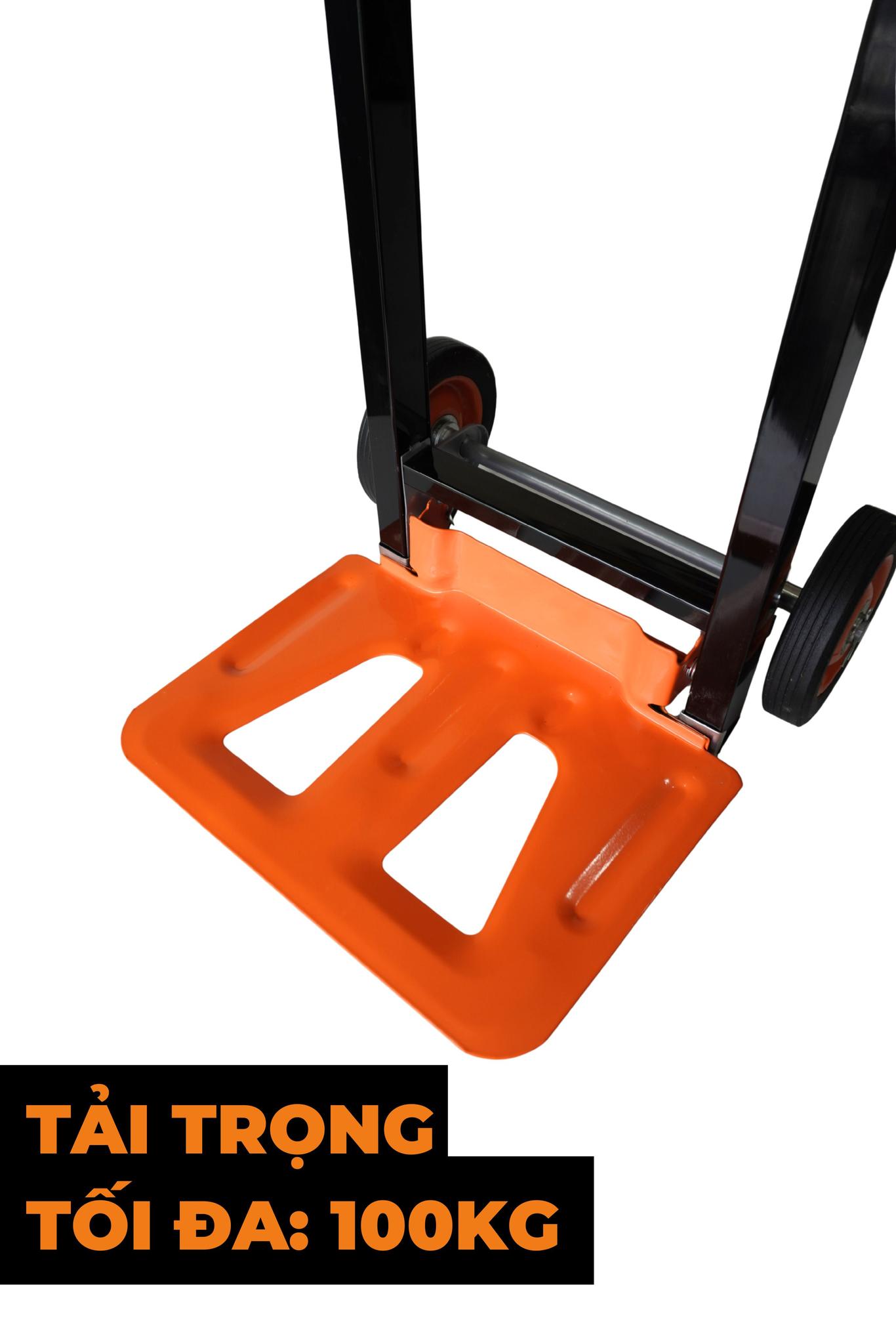 Với tải trọng 100kg, xe xử lý tốt các thùng hàng carton, máy móc nhỏ hoặc linh kiện điện tử. Đây là lựa chọn số 1 cho các chủ cửa hàng, shophouse hoặc kho vận mini.