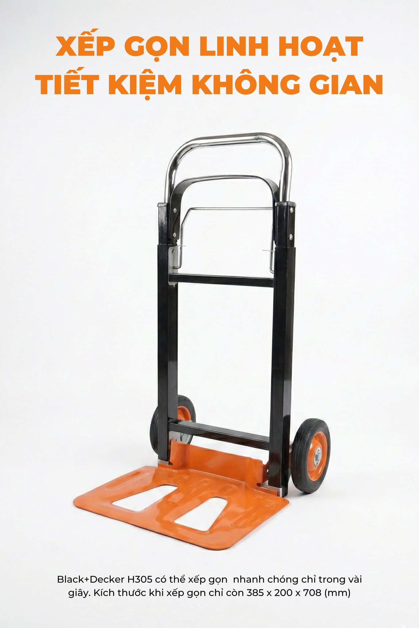 Thay vì phải xách tay nặng nề từ sảnh chung cư lên phòng, xe đẩy hàng Black and Decker H305 sẽ giúp Anh/Chị di chuyển mọi thứ nhẹ nhàng chỉ trong một lần kéo.