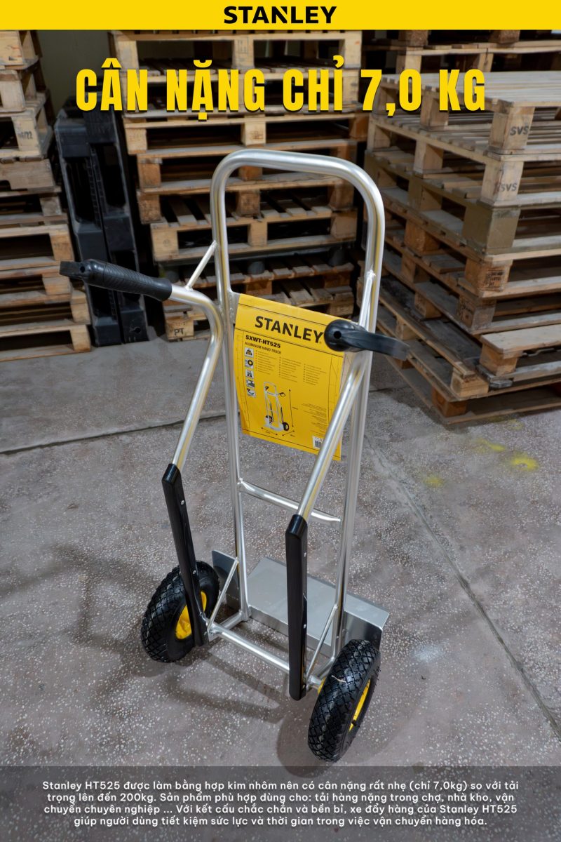 Với thiết kế 2 bánh công nghiệp cùng tải trọng lên đến 200kg, xe đẩy hàng Stanley HT525 sẽ giúp anh/chị giải quyết bài toán vận chuyển một cách nhanh chóng, an toàn và cực kỳ tiết kiệm sức lao động.