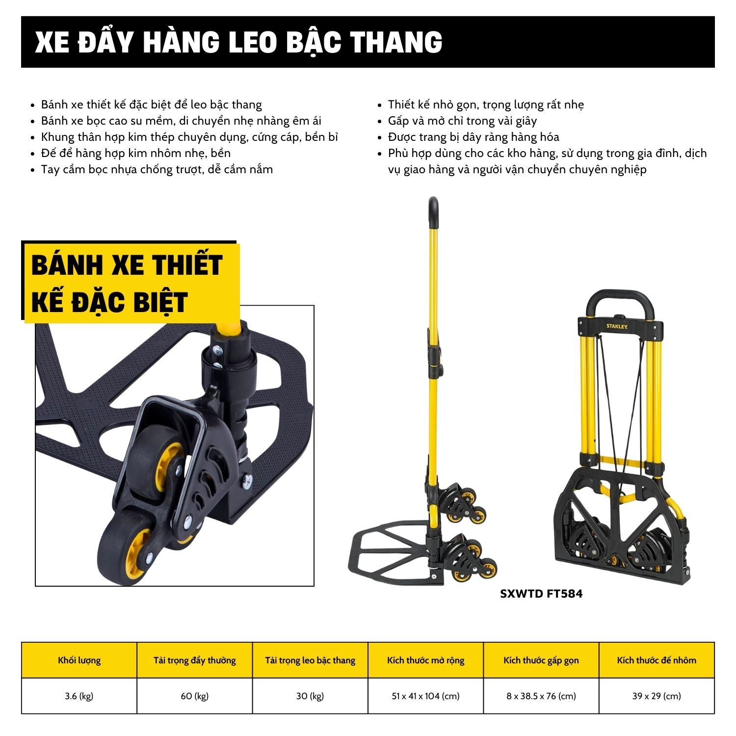 Trong bài viết này, Dungcuchinhhang.com sẽ mang đến cho Anh/Chị các thông tin chi tiết về sản phẩm xe đẩy hàng leo bậc thang Stanley FT584 một lựa chọn hoàn hảo cho những ai thường xuyên phải vận chuyển hàng hóa qua nhiều địa hình, đặc biệt là cầu thang hoặc không gian nhỏ hẹp.