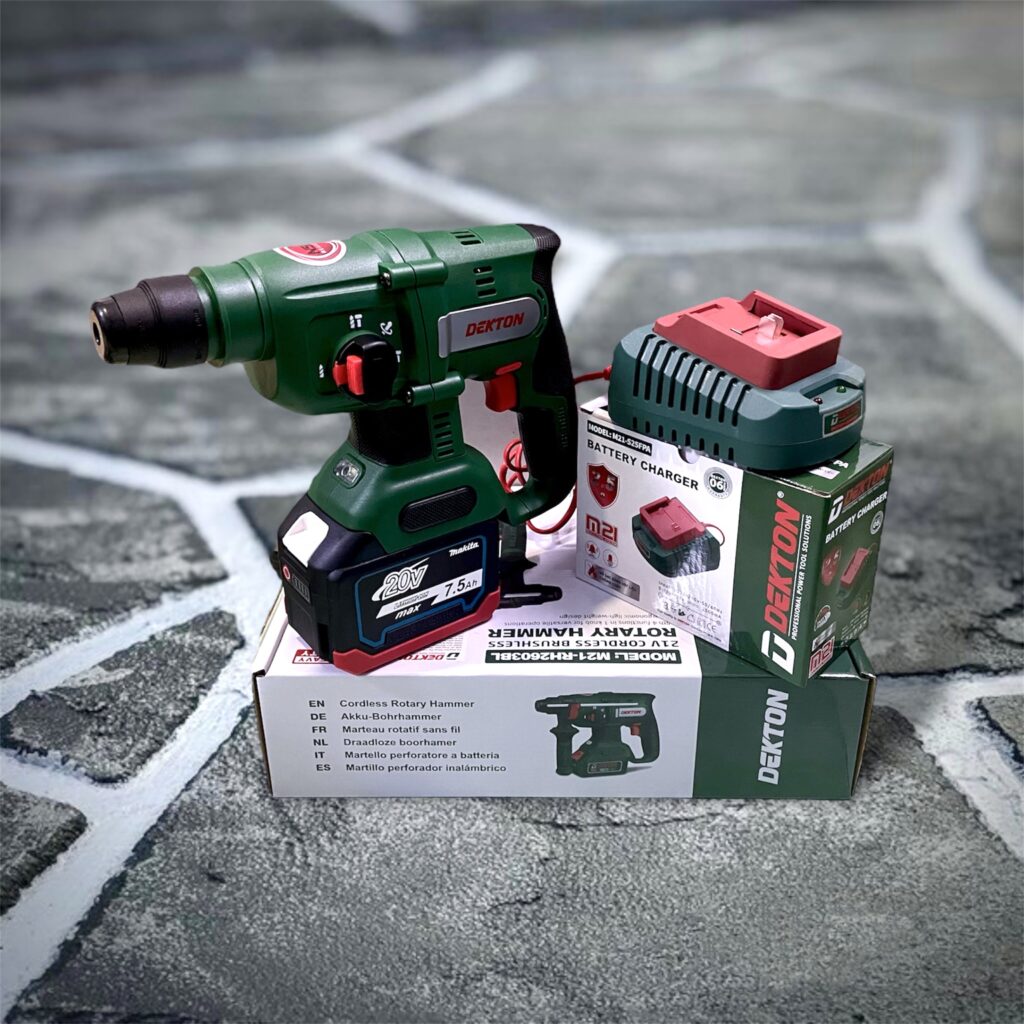 Ưu điểm nổi bật của máy này là động cơ không chổi than (Brushless) giúp giảm ma sát, tăng tuổi thọ máy, đồng thời tiết kiệm năng lượng và vận hành êm ái hơn. Với tốc độ 0-1350 vòng/phút, máy cho khả năng khoan nhanh, chính xác, tiết kiệm thời gian. Lực đập lên tới 2.6J, máy có thể khoan bê tông dễ dàng, phù hợp cho các công việc xây dựng, sửa chữa. Với khả năng đảo chiều và đèn led trợ sáng hỗ trợ người dùng làm việc hiệu quả trong các môi trường tối hoặc chật hẹp. Ngoài ra Dekton M21-RH2603CP còn có đầu gài SDS Plus, giúp thay đổi mũi khoan nhanh chóng, linh hoạt, đặc biệt hữu ích khi thay đổi giữa các công việc khác nhau.