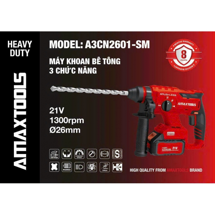 Máy Khoan Bê Tông Pin AMAXTOOLS A3CN2601-SM
